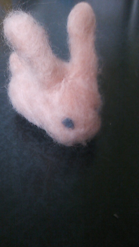 フェルトを開いて丸めて、ニードルでつんつん刺して、いっぱい刺して、うさぎさんの出来上がり