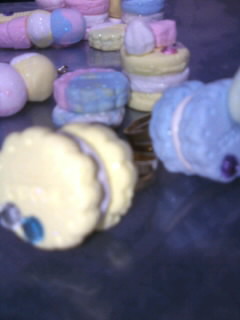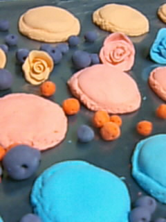 絵の具を混ぜるのがヘタなのか、粘土と絵の具の相性なのか、淡いパステルカラーが作れません。薄い、淡い、溶けてしまいそうなピンク色したマカロンを作りたかったんだけどな。